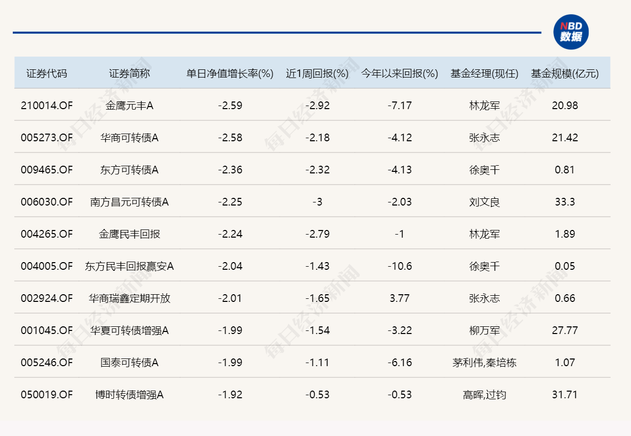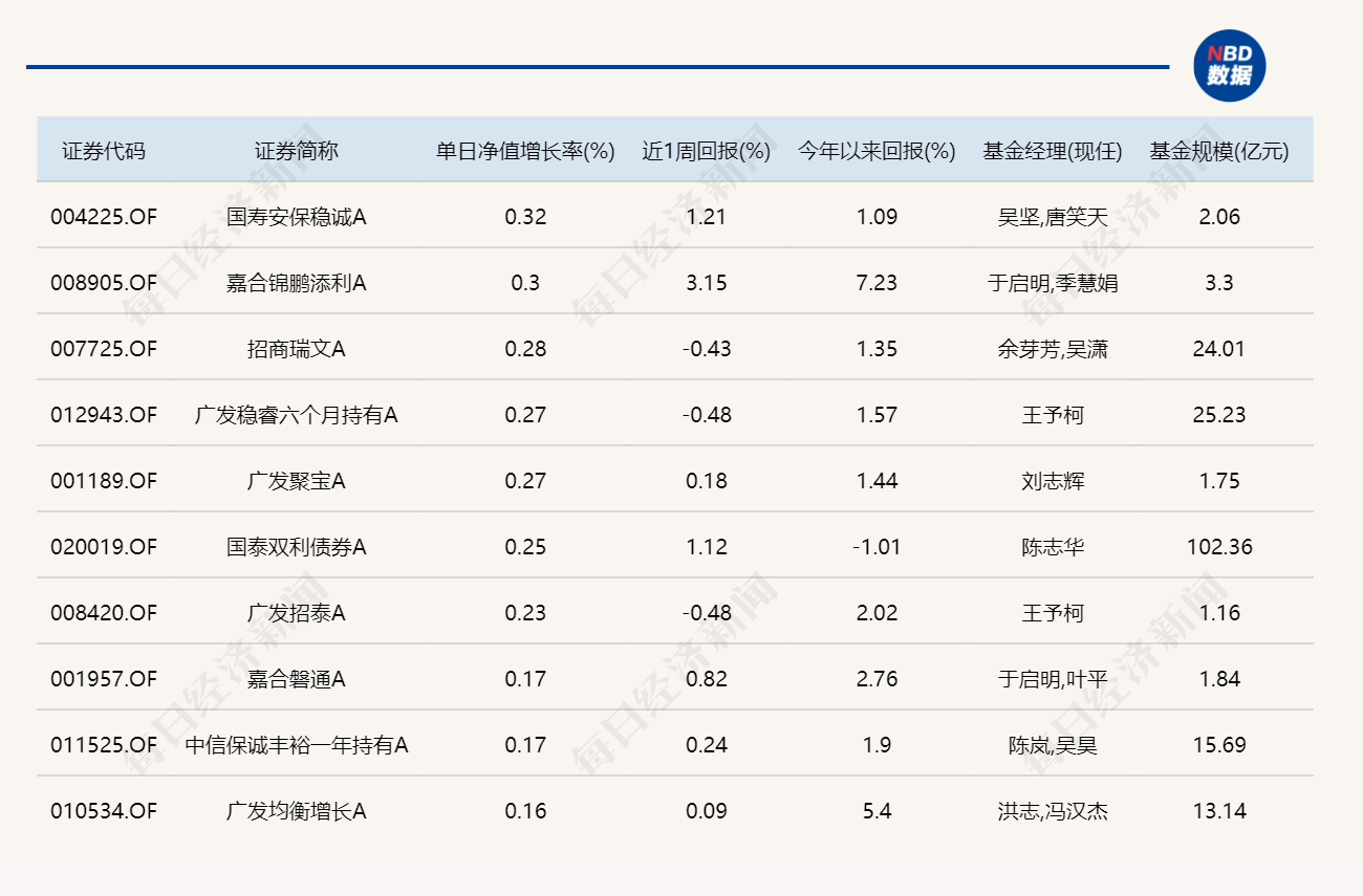 3.單日債基漲跌幅榜