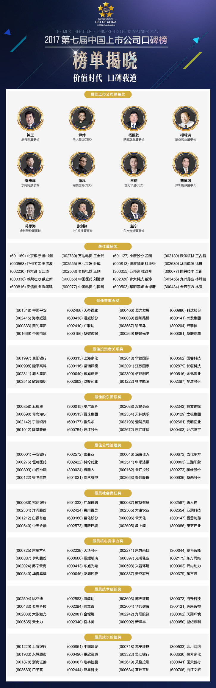 正本清源、守望價(jià)值,也一直是《每日經(jīng)濟(jì)新聞》連續(xù)七年舉辦中國(guó)上市公司口碑榜的初衷。2017年的盛會(huì)已經(jīng)正式開(kāi)啟,在價(jià)值時(shí)代的感召之下,今年的獎(jiǎng)項(xiàng)競(jìng)選必將更為激烈,就讓我們靜候佳音。